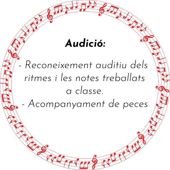 - Treballar aspectes rítmics bàsics. Introduir la pràctica instrumental bàsica.