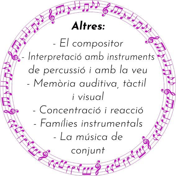 - Conèixer els instruments musicals i Iniciar la pràctica instrumental especialitzada.