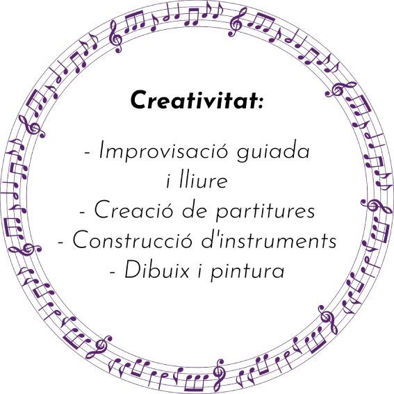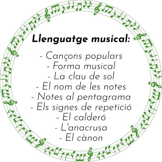 A través d'activitats musicals pràctiques i de jocs ens relacionem amb la cultura i les tradicions que ens envolten, entrant en contacte amb els diferents instruments i fomentant la relació entre els alumnes sempre en un clima positiu d'aprenentatge.